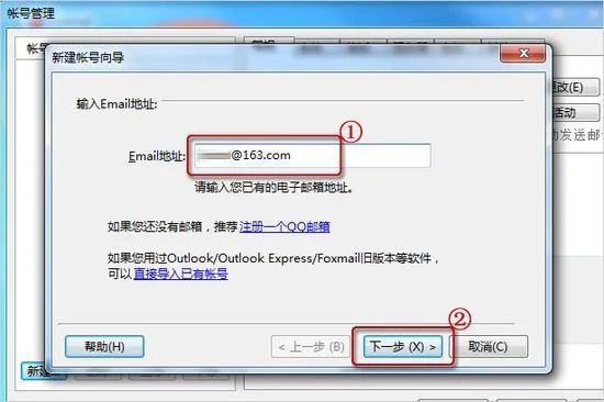 3、进入Foxmail新建帐号向导后输入您的“电子邮件地址”后点击“下一步”;