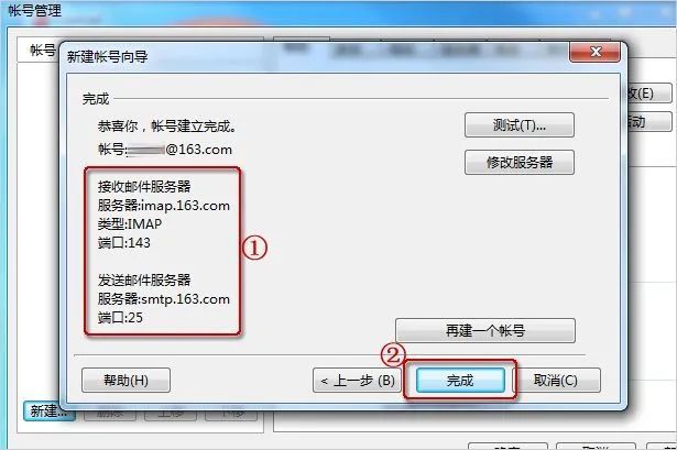 5、系统会自动匹配接收和发送服务器信息,点击“完成”即可;
