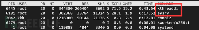 防御规避 | 挖矿进程名为kthreadaddi,挖矿进程名与系统进程名高度相似,以实现混淆 |